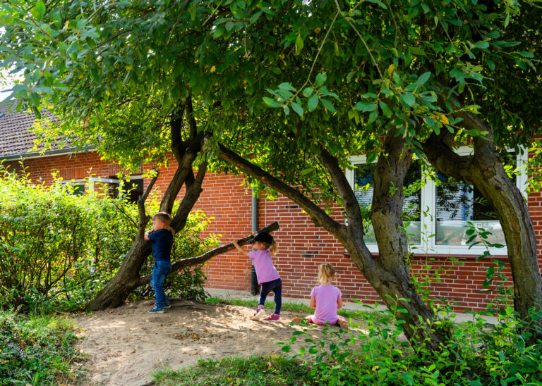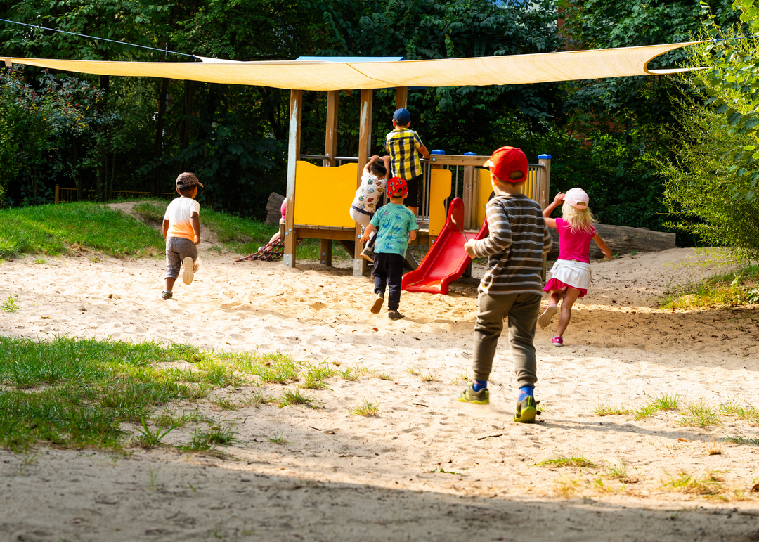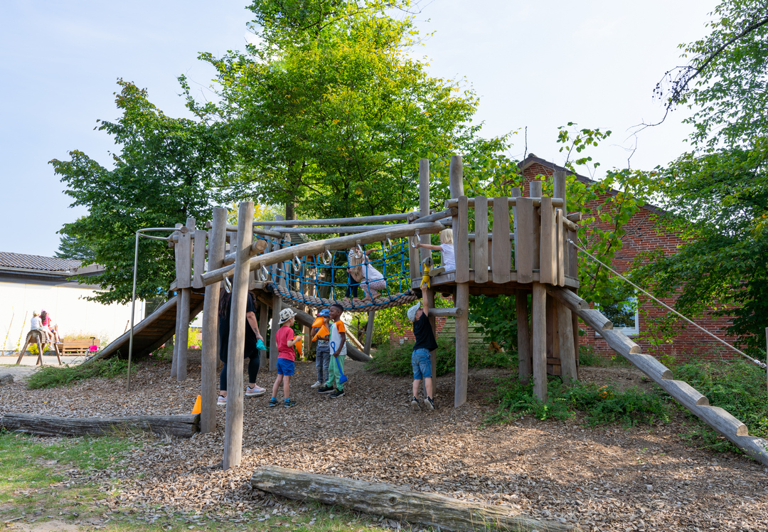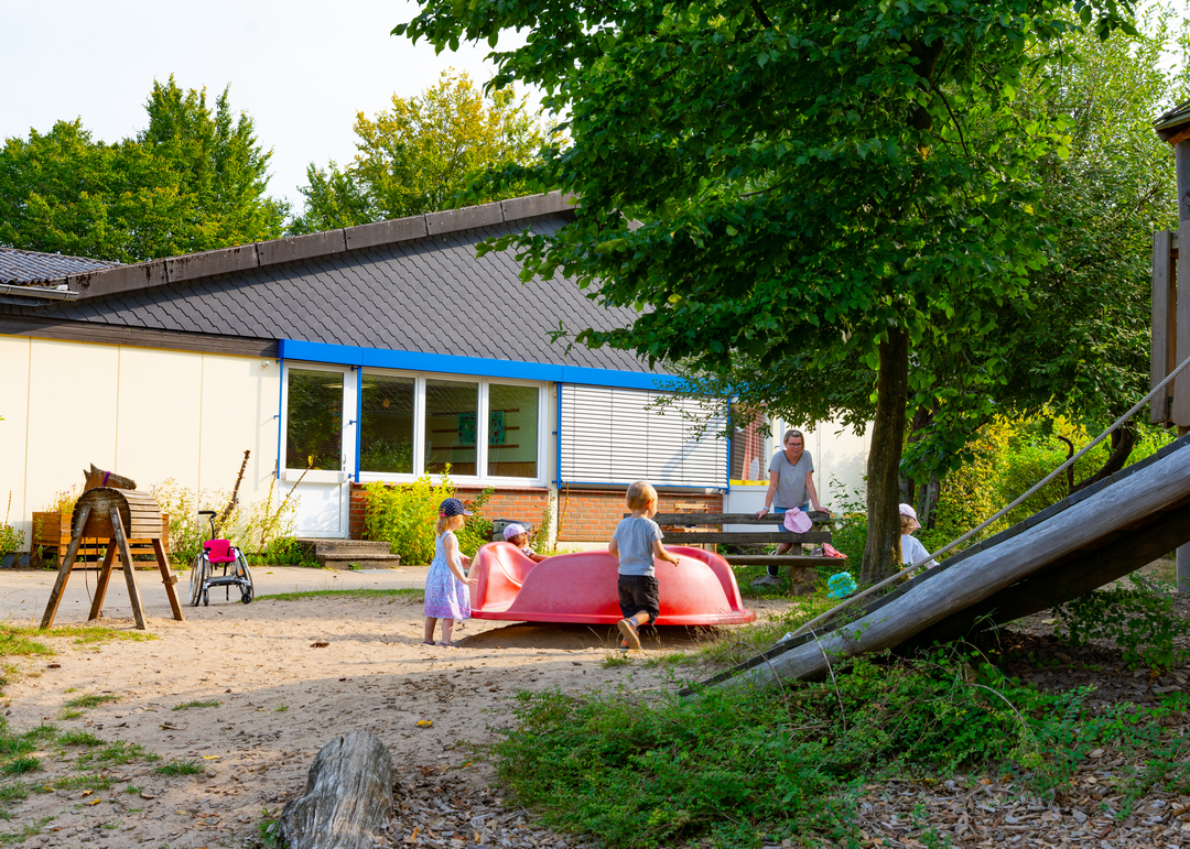 Unsere Einrichtung verfügt über einen großzügigen Außenbereich. Die Außengestaltung ist so angelegt, dass die Kinder unterschiedlichen Bewegungsbedürfnissen, z.B. klettern, laufen, schaukeln, mit Fahrzeugen fahren, nachgehen, sich aber auch in „geschützten Ecken“ zurückziehen können. Hindernisse die herausfordern, Höhenunterschiede und unterschiedliche Bodenbeschaffenheiten zeichnen den Außenbereich aus.